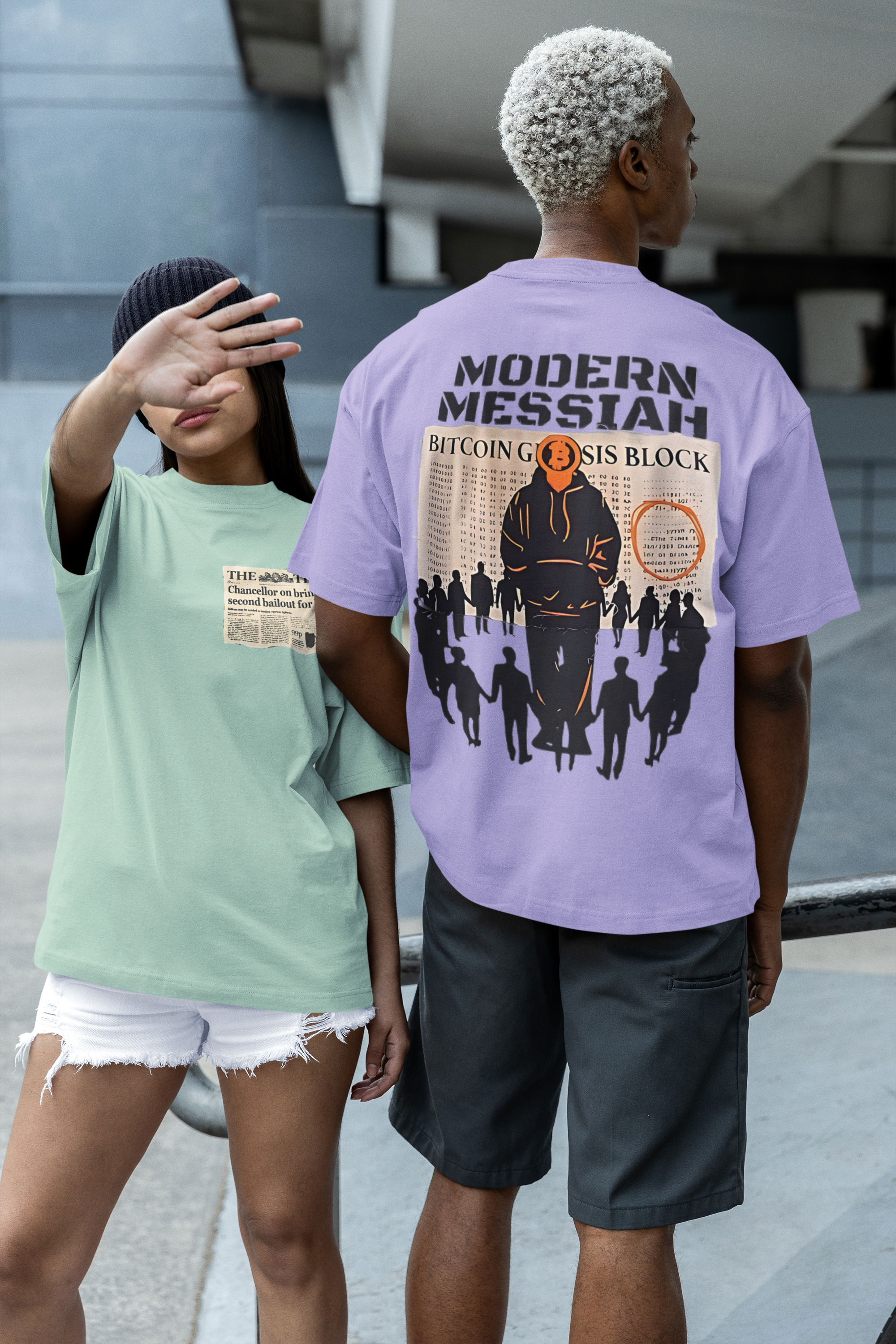 BITCOIN DISTRESSED BURNT PATCHWORK PUFF PRINTED UNISEX OVERSIZED DROP SHOULDER T-SHIRT